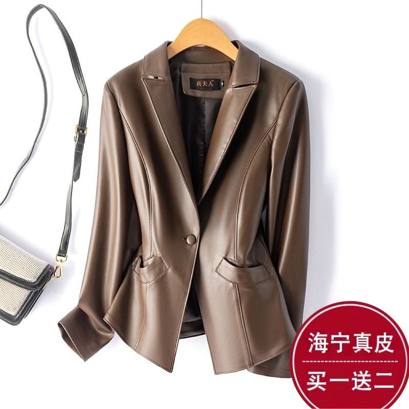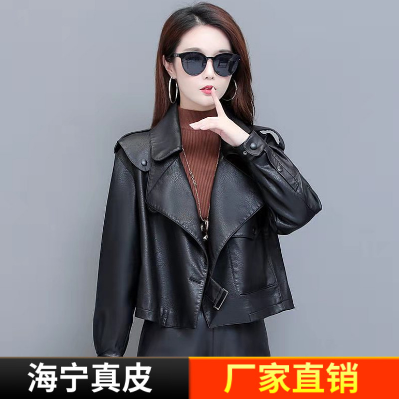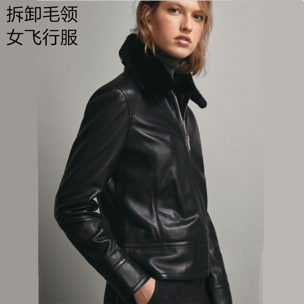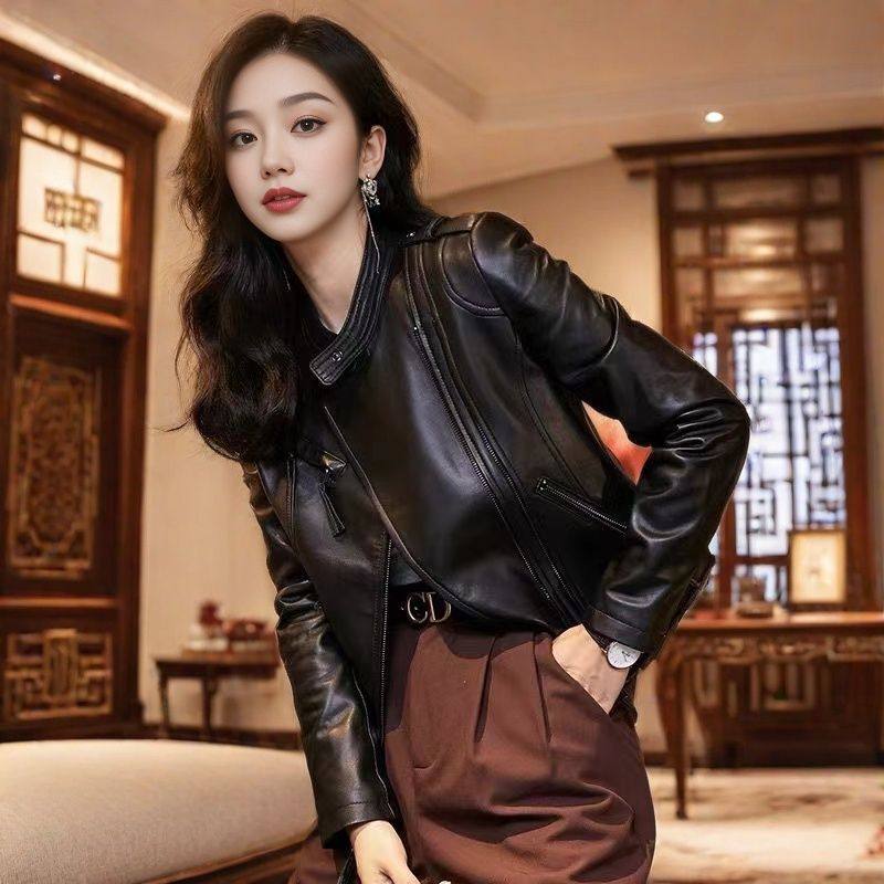 - 秋款真皮皮衣女