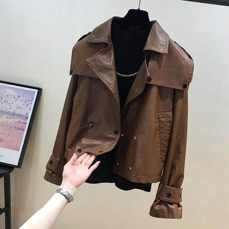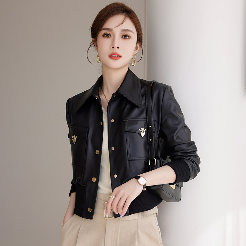 - 女皮衣小外套修身短款
