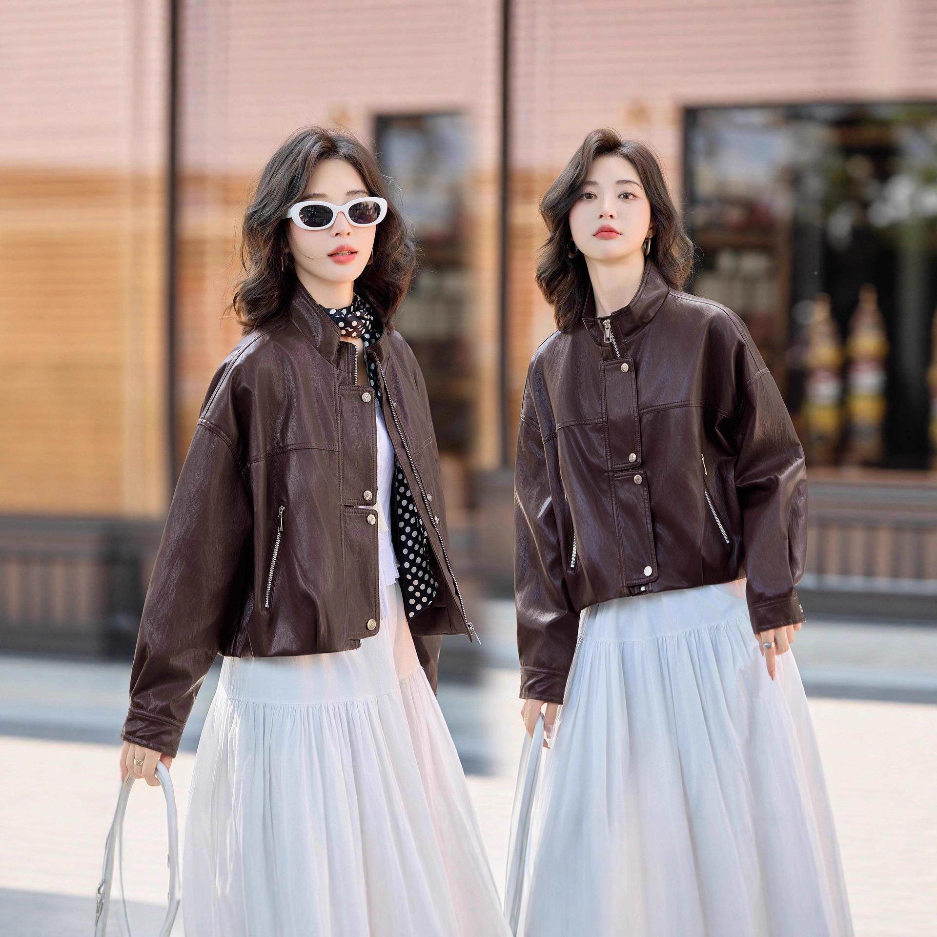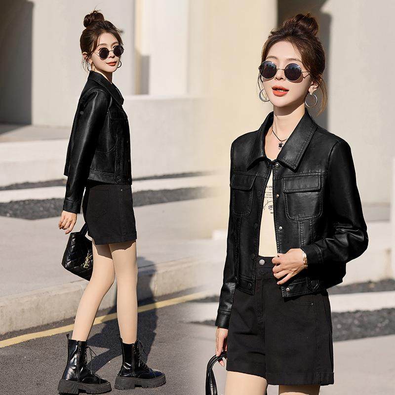 - 皮衣 女 短款 修身韩版