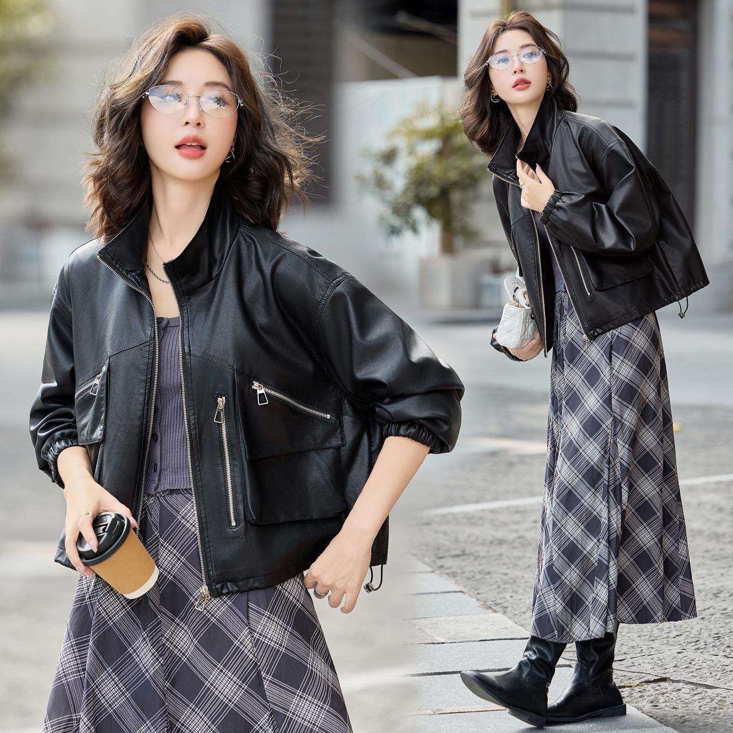 - 皮衣 女 短款 春秋
