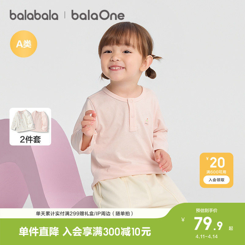 【2件装】巴拉巴拉儿童长袖t恤宝宝2026新款秋冬装男女童装打底衫