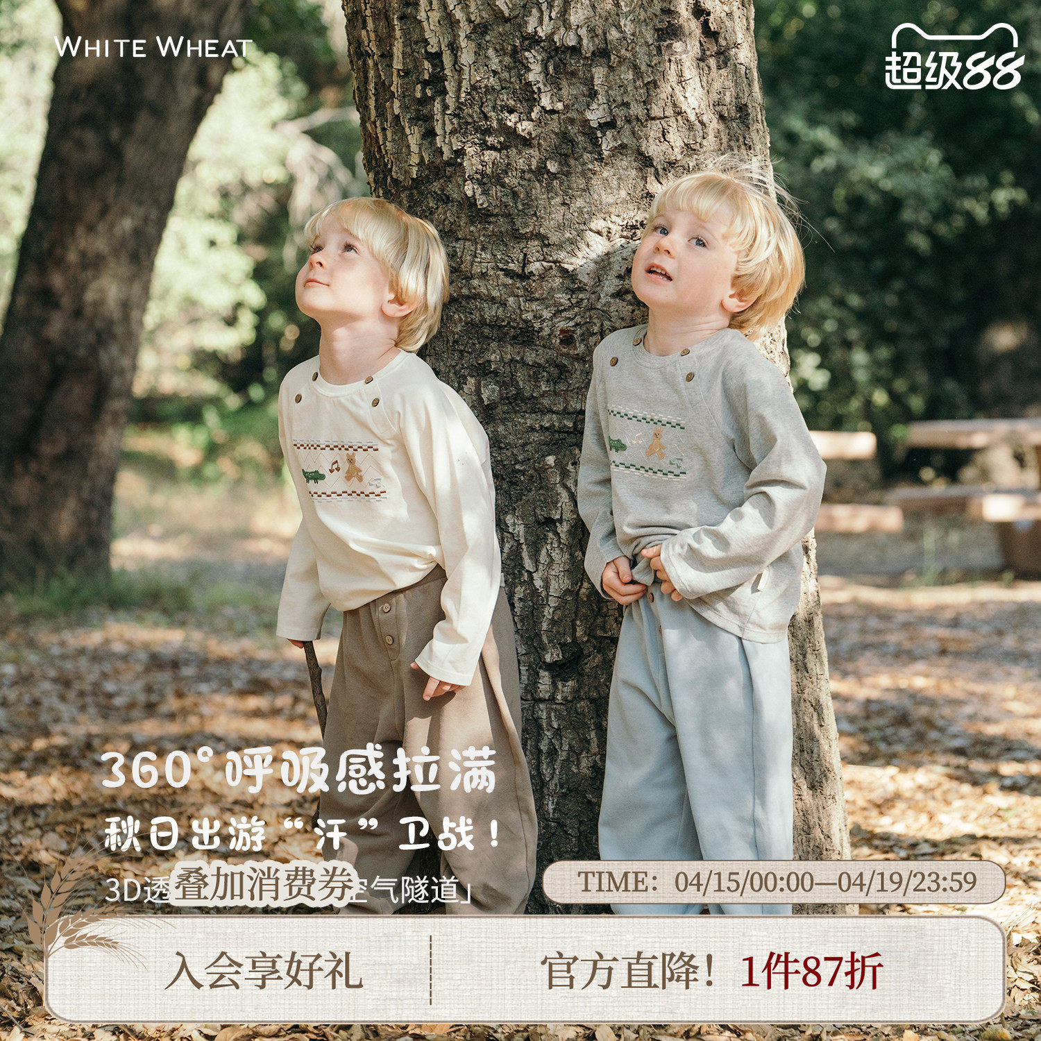 whitewheat儿童26春秋新款长袖男童女童秋冬纯棉t恤小宝宝打底衫