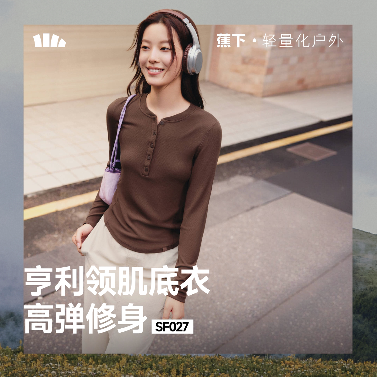 蕉下亨利衫女长袖T恤v领秋冬修身保暖低领打底衫半开领纯色上衣
