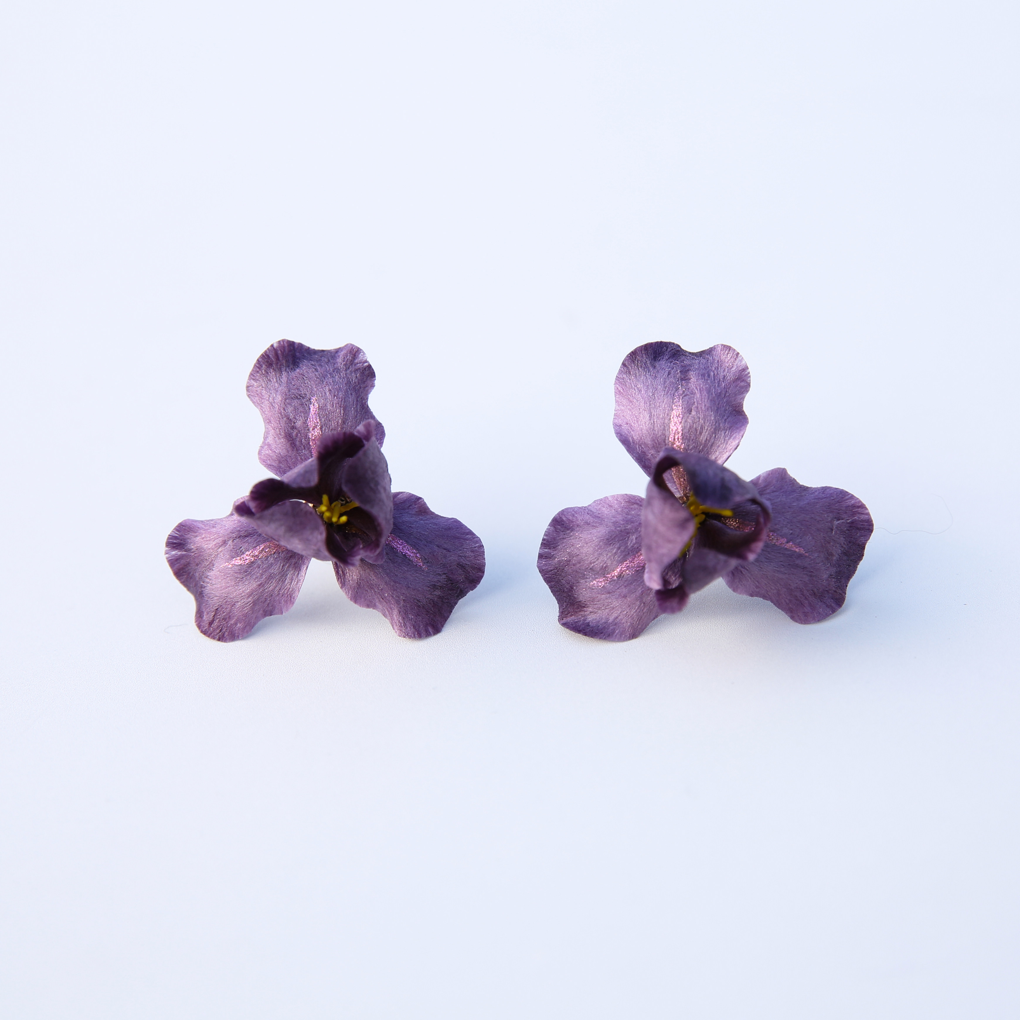 江南拾花 非遗绒花鸢尾耳钉国风高级感气质大气紫色花朵耳饰耳环
