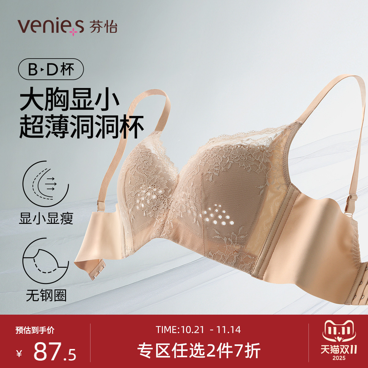 芬怡超薄内衣女大胸显小无钢圈收副乳性感蕾丝透气洞洞杯文胸8968