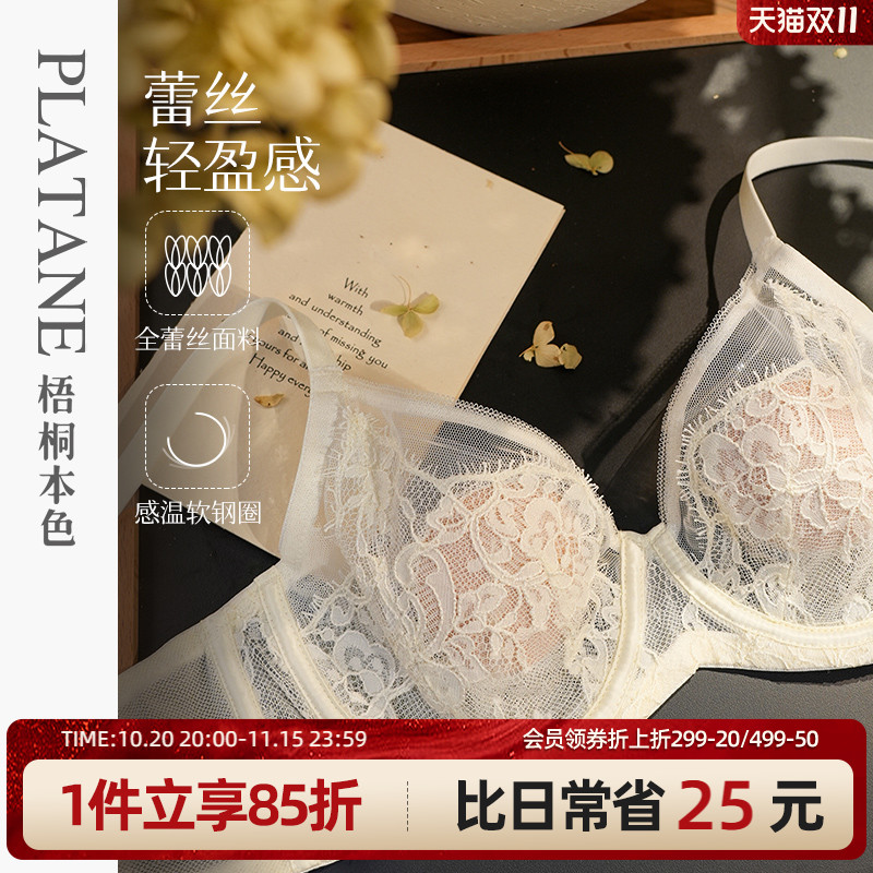 梧桐本色大胸显小内衣女士超薄款法式浪漫胸罩性感蕾丝防下垂文胸