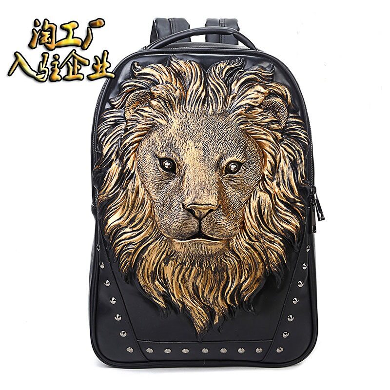 朋克浮雕双肩包男外贸热卖动物狮子头背包户外防水潮酷旅行电脑包