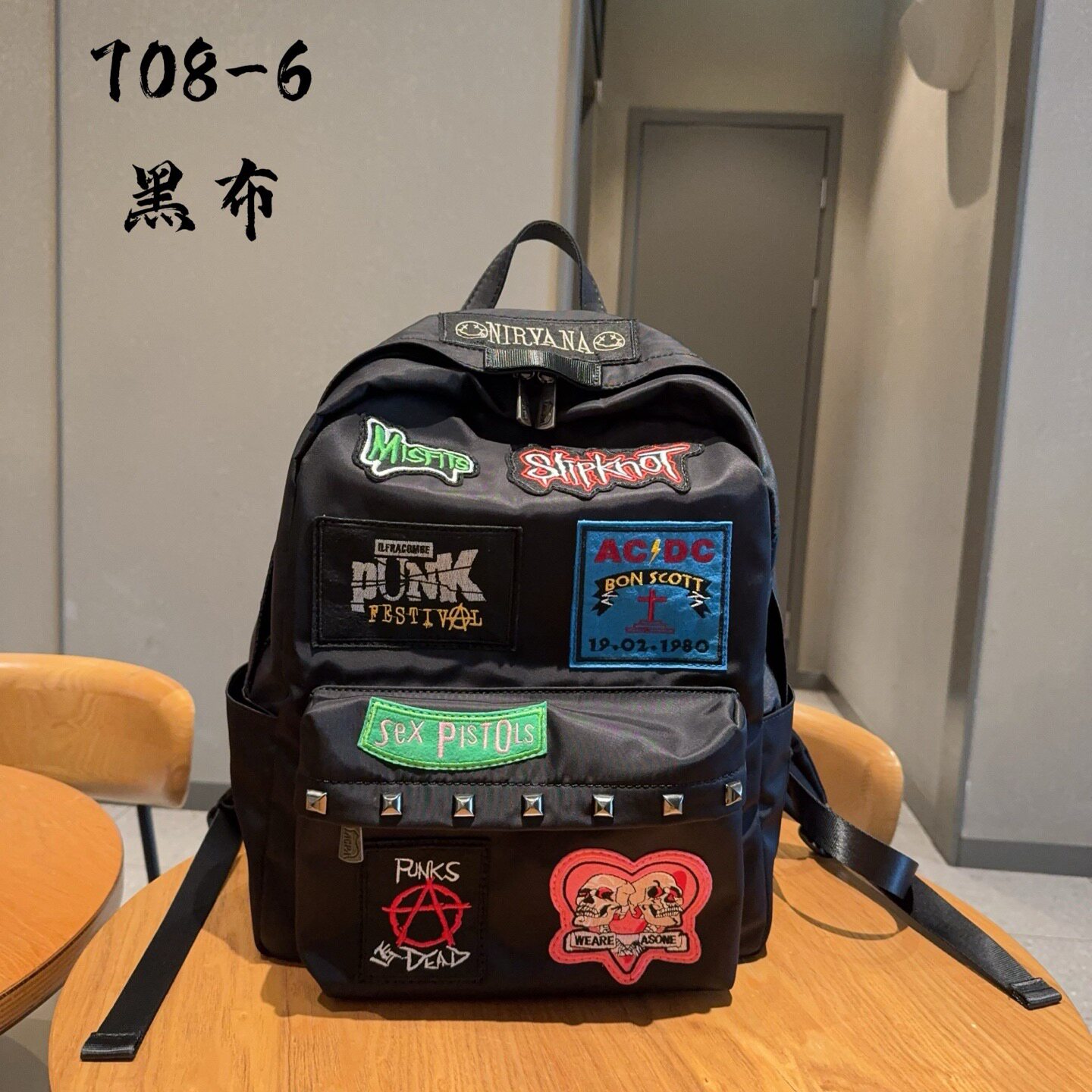 朋克风摇滚乐队徽章双肩包复古做旧铆钉背包男女学生大容量书包潮