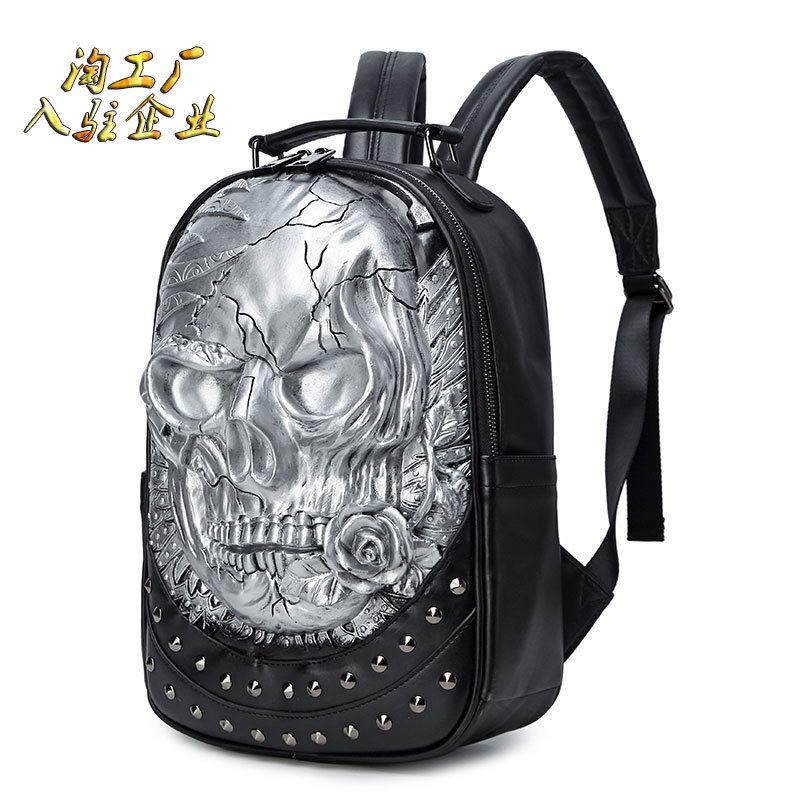 浮雕立体骷髅头背包朋克男女式欧美潮流防水pu双肩包原创铆钉箱包