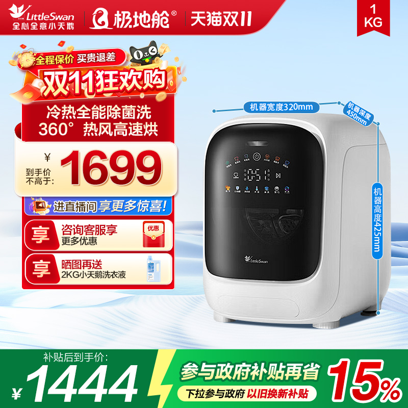 小天鹅极地舱1KG迷你宝宝内衣裤小型婴儿洗烘一体全自动洗衣机