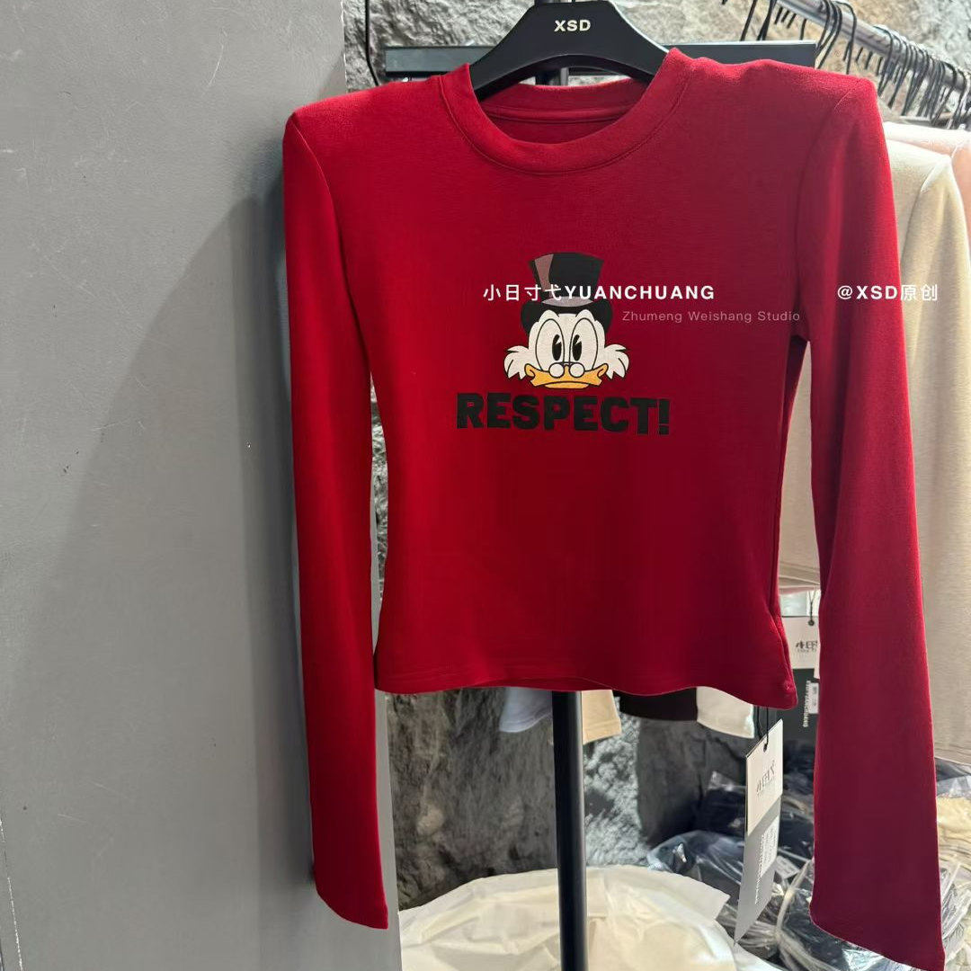 - 大红色卫衣女套头宽松