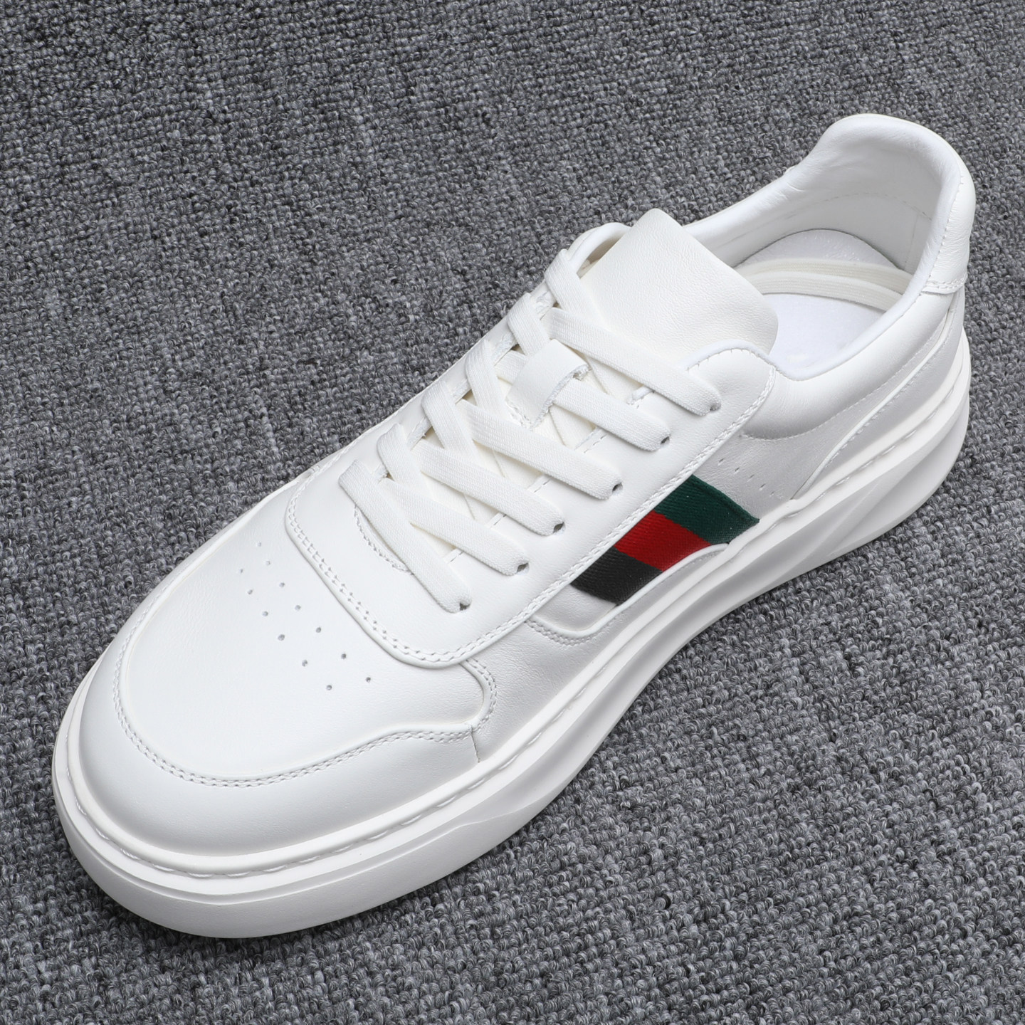 头层牛皮小白鞋男款韩版增高厚底百搭休闲板鞋潮流拼接真皮鞋子男