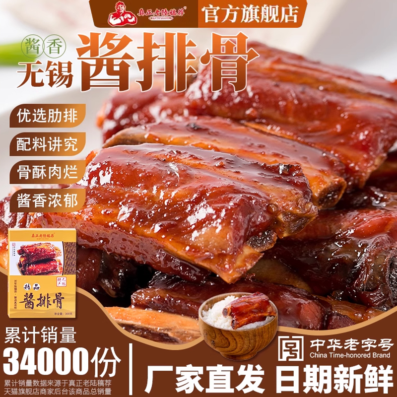 老陆稿荐精品红烧酱排骨300g即食酱肉熟食小零食猪肉江苏无锡特产