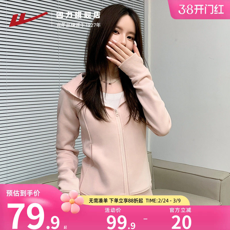 回力外套女春秋款穿搭2026新款开衫卫衣女装粉色瑜伽修身运动上衣