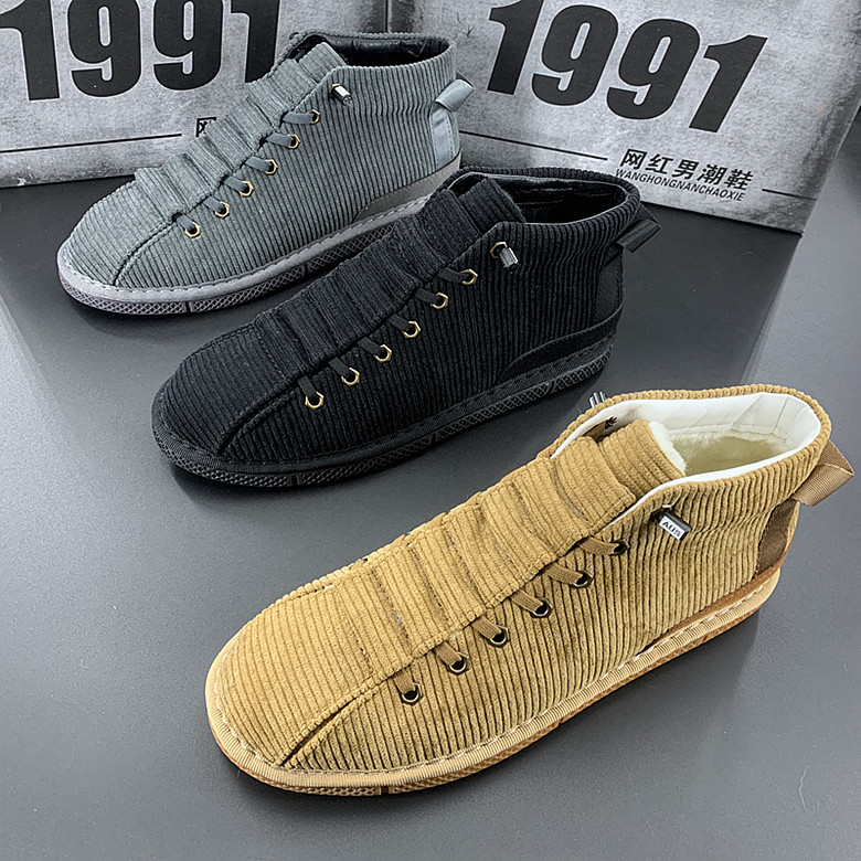 精神小伙冬季男鞋条绒棉鞋一脚蹬牛津底百搭潮流男士鞋子网红潮鞋