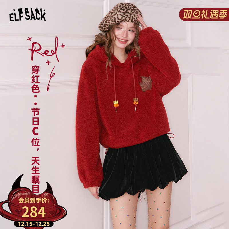 - 红色短款卫衣