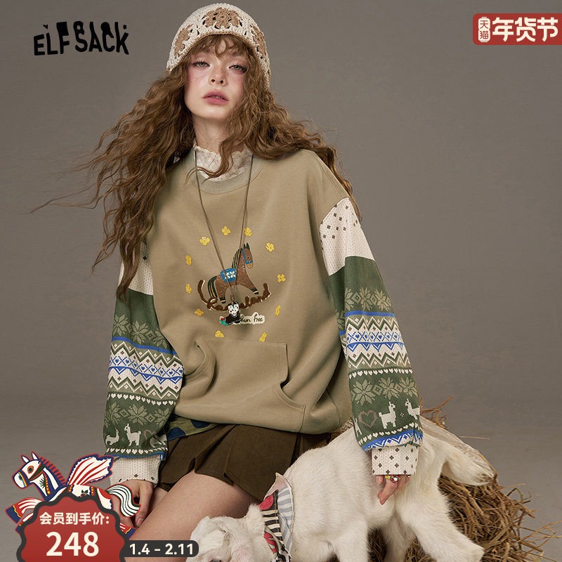 - 高领拼接卫衣女