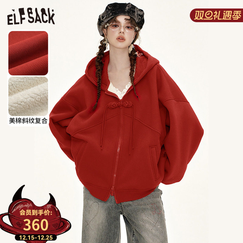 - 大码加绒开衫卫衣 女