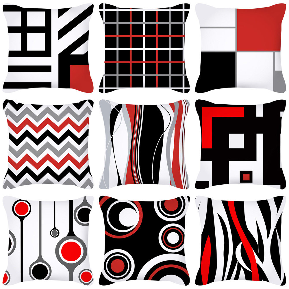 红色北欧棉麻沙发抱枕极简文艺几何风格双面图案大靠垫可定制枕套
