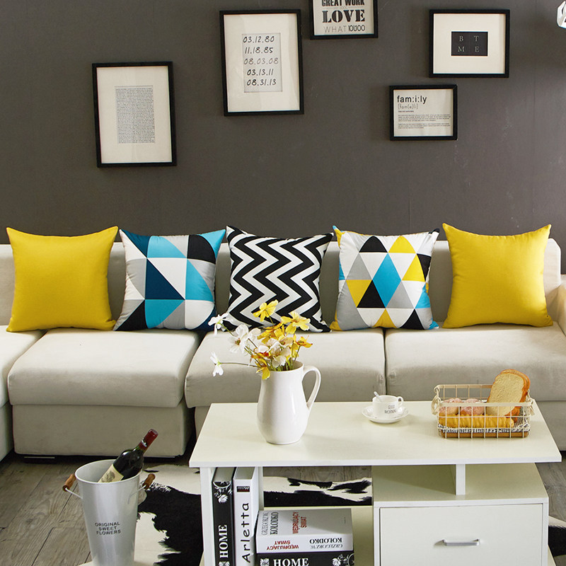 北欧靠枕简约现代经典搭配几何图样板房黄色客厅沙发抱枕家居靠垫