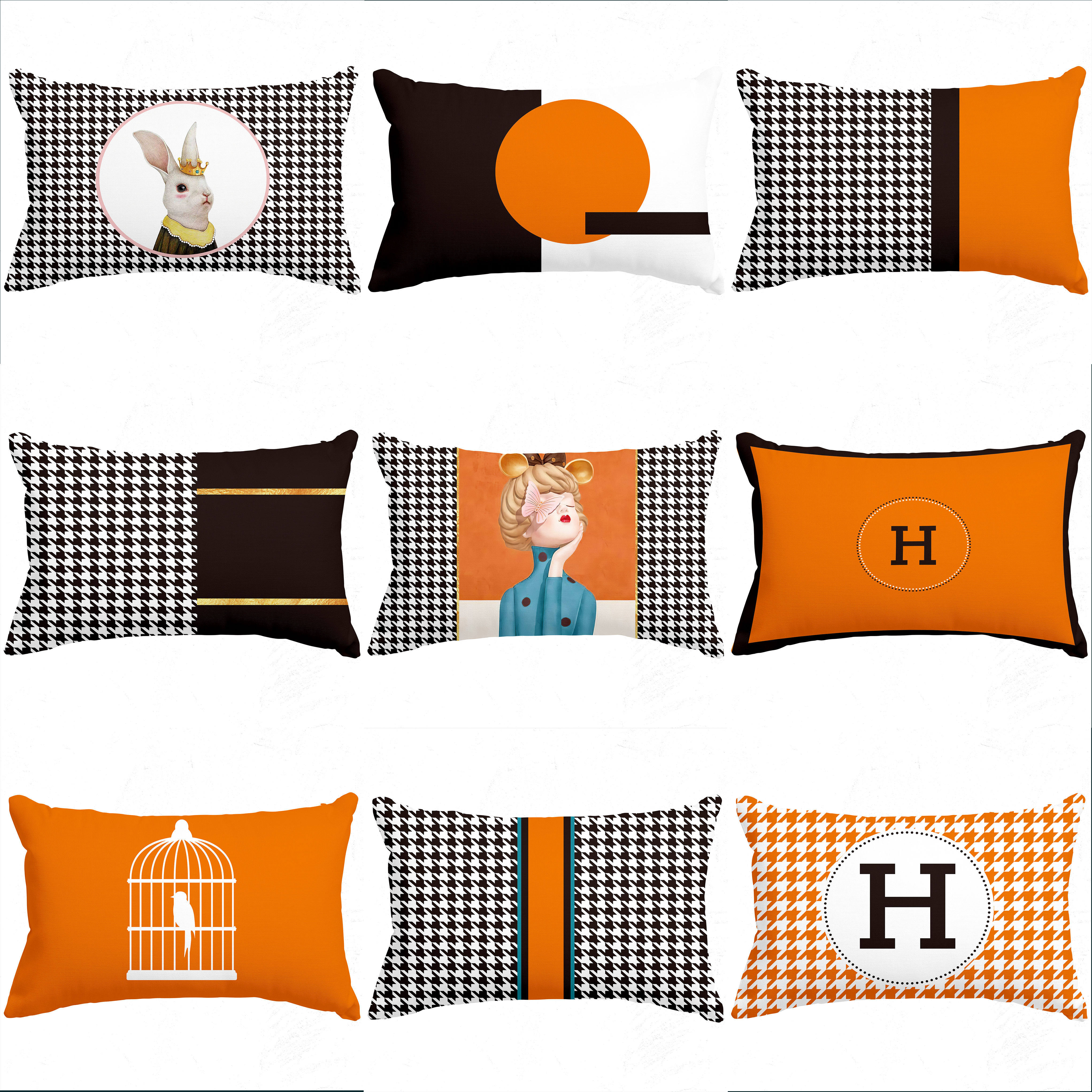 北欧橙色轻奢长方型款沙发抱枕橙红色几何现代美式腰枕靠背套可拆