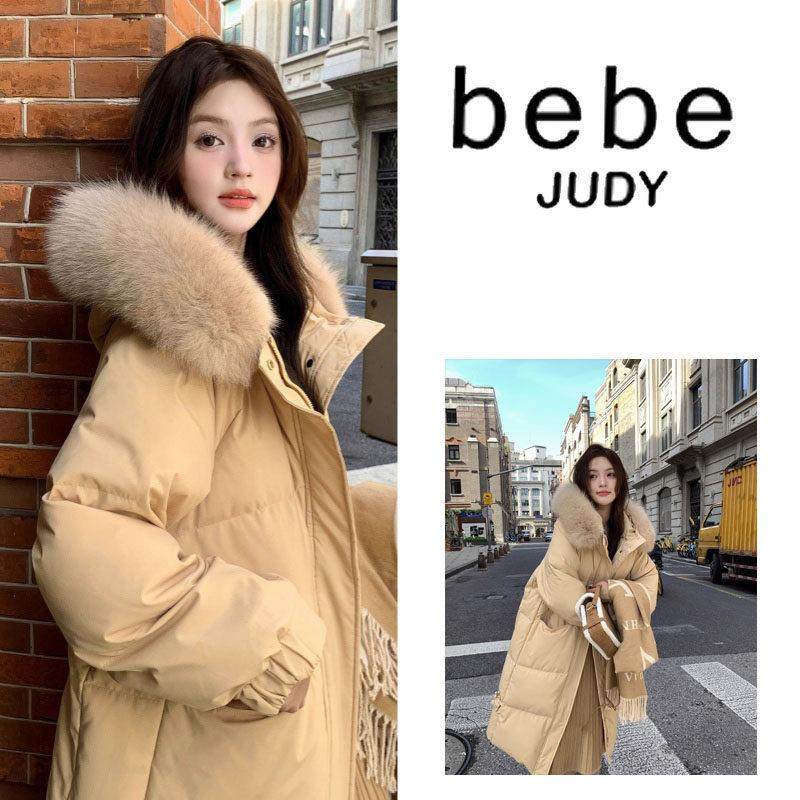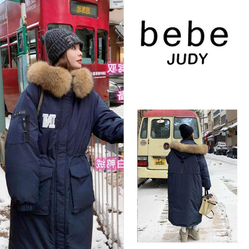 bebe judy~大狐狸毛领羽绒服女冬季中长款过膝宽松保暖显瘦厚外套