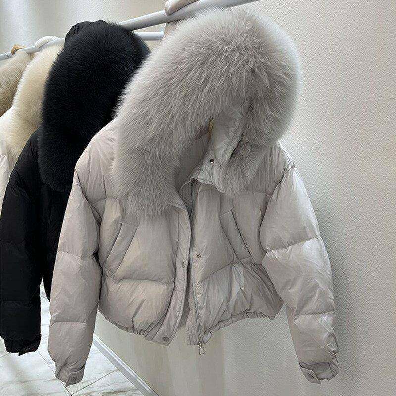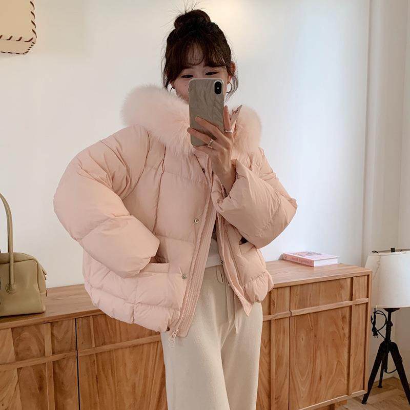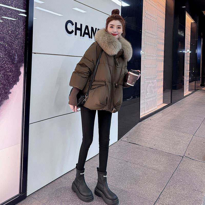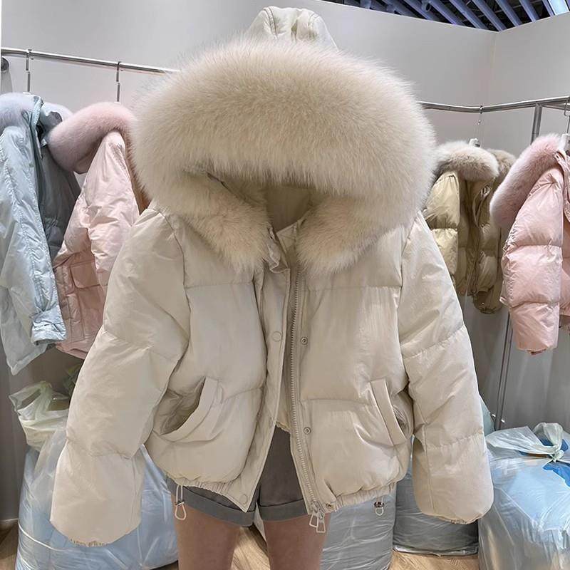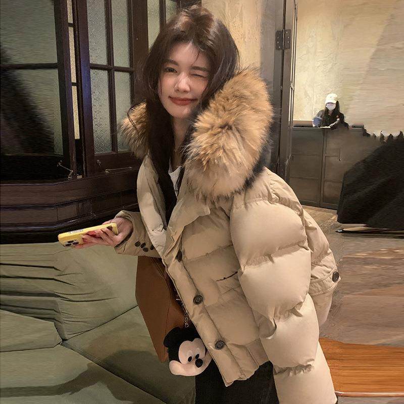 韩国东大门大毛领短款羽绒服女2025冬季新款加厚宽松白鸭绒外套潮