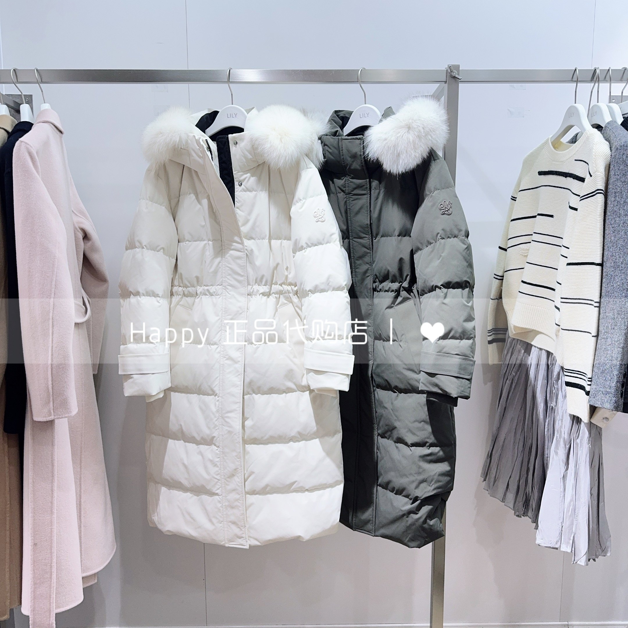 LILY丽丽国内代购25年冬新125450DD202收腰连帽大毛领鸭绒羽绒服