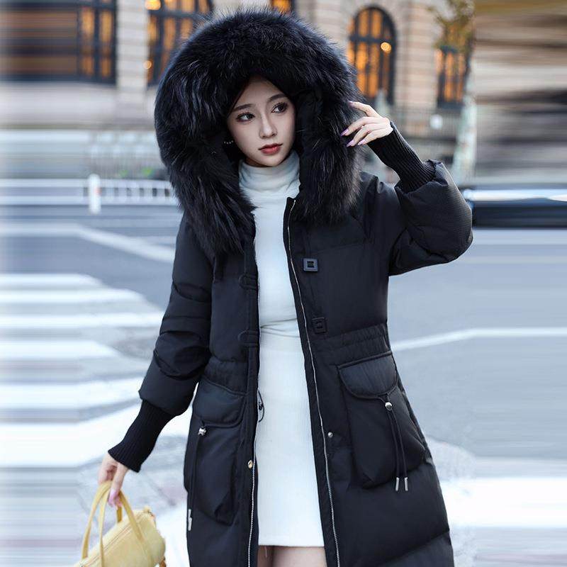 - 大毛领羽绒服女中长款韩版加厚