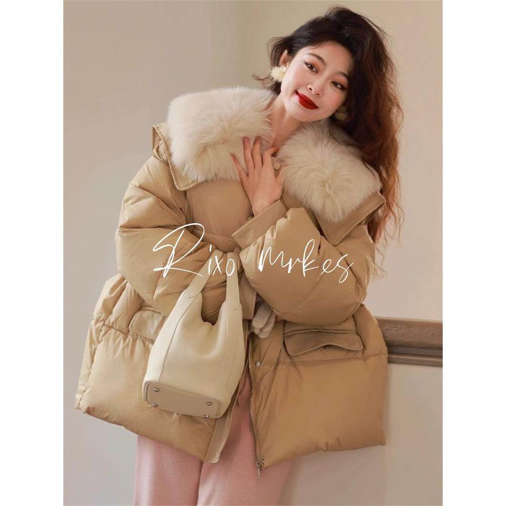 RIXO DORE法式短款大毛领设计小众保暖白鸭绒时髦保暖羽绒服女