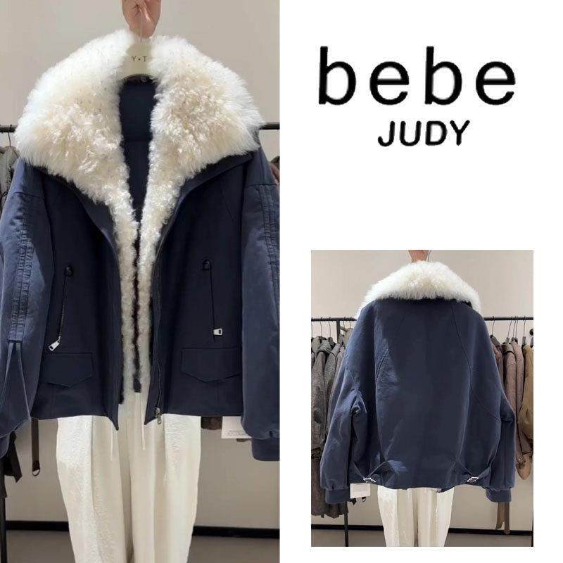 bebe judy~短款真大毛领羽绒服女冬季宽松气质派克服加厚工装外套