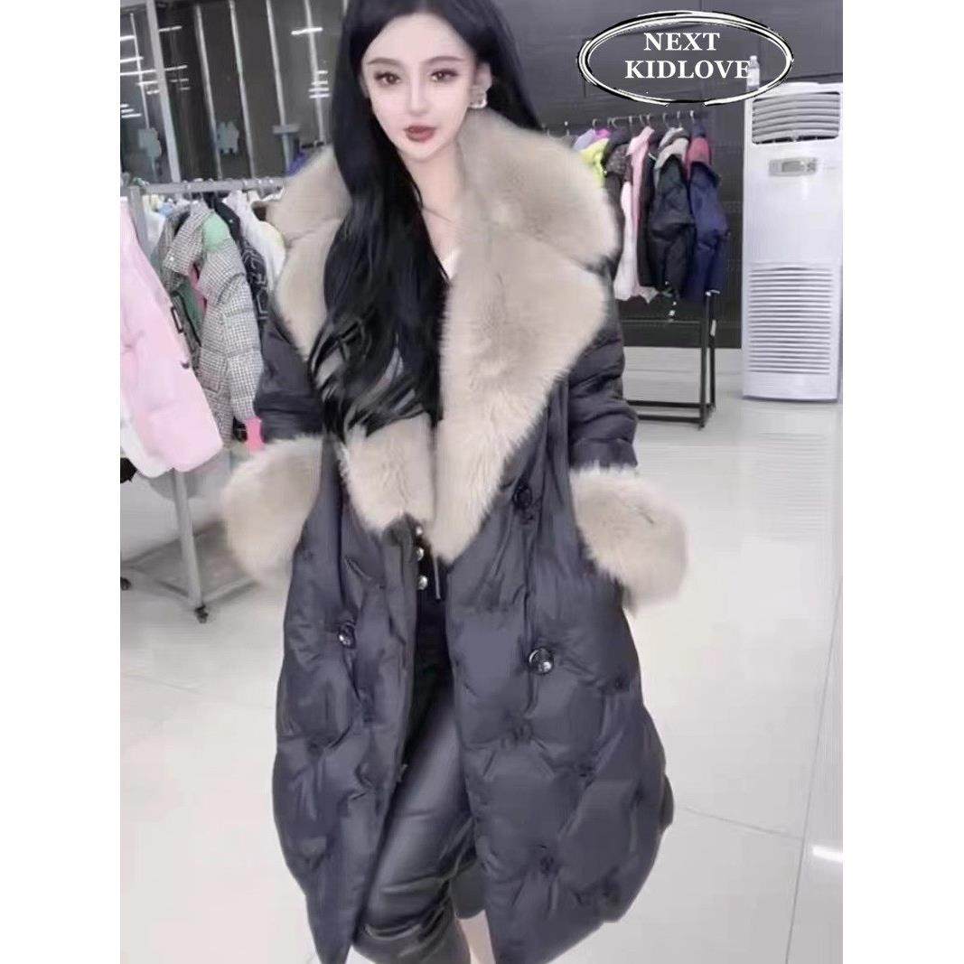 香港高级感大毛领加厚保暖羽绒服女中长款收腰名媛气质大衣外套冬