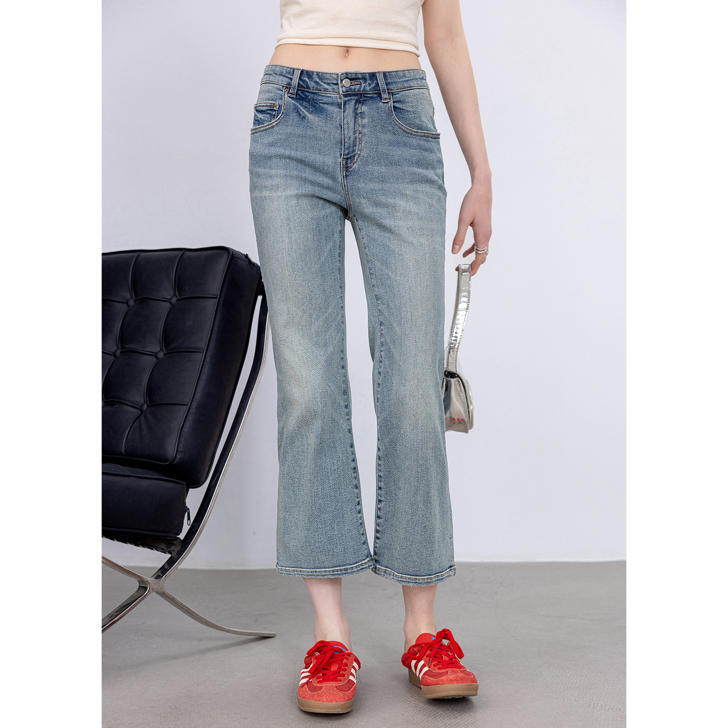 微喇牛仔裤女款2026新款春季修身显瘦中低腰复古小个子九分喇叭裤