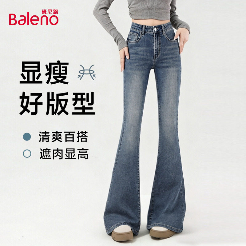 班尼路微喇牛仔裤女款2026春季新款高腰显瘦弹力亲肤百搭喇叭裤N