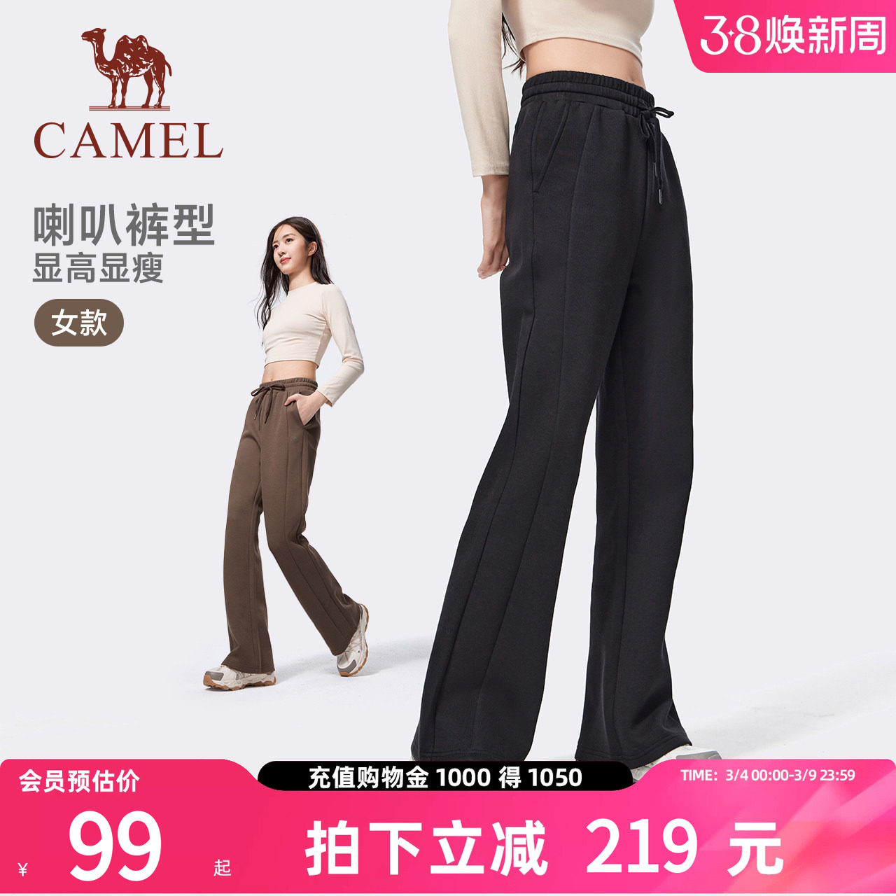 骆驼休闲裤女款2025秋冬时尚修身保暖运动裤显瘦棉感针织喇叭长裤