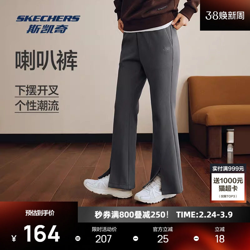 斯凯奇2026开叉设计女款长裤舒适针织休闲运动裤微喇叭裤百搭卫裤