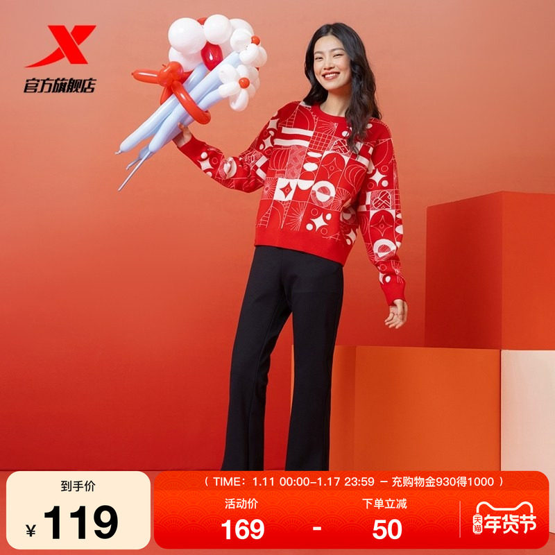 特步新年丨喇叭裤修身运动裤女款春秋季时尚潮流百搭时尚黑色卫裤