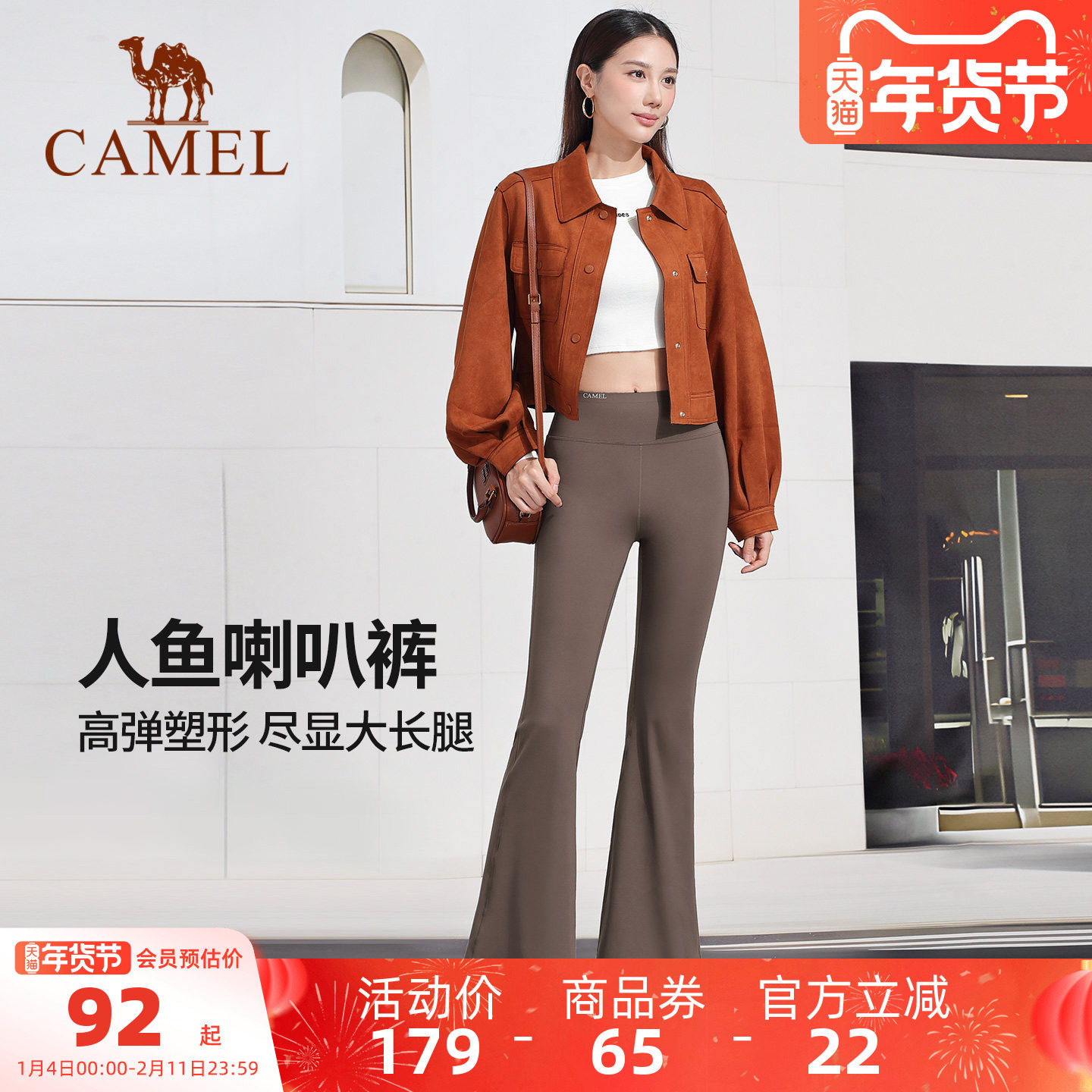 骆驼微喇叭瑜伽裤女款秋冬黑色高腰显瘦防晒外穿棕色修身休闲长裤