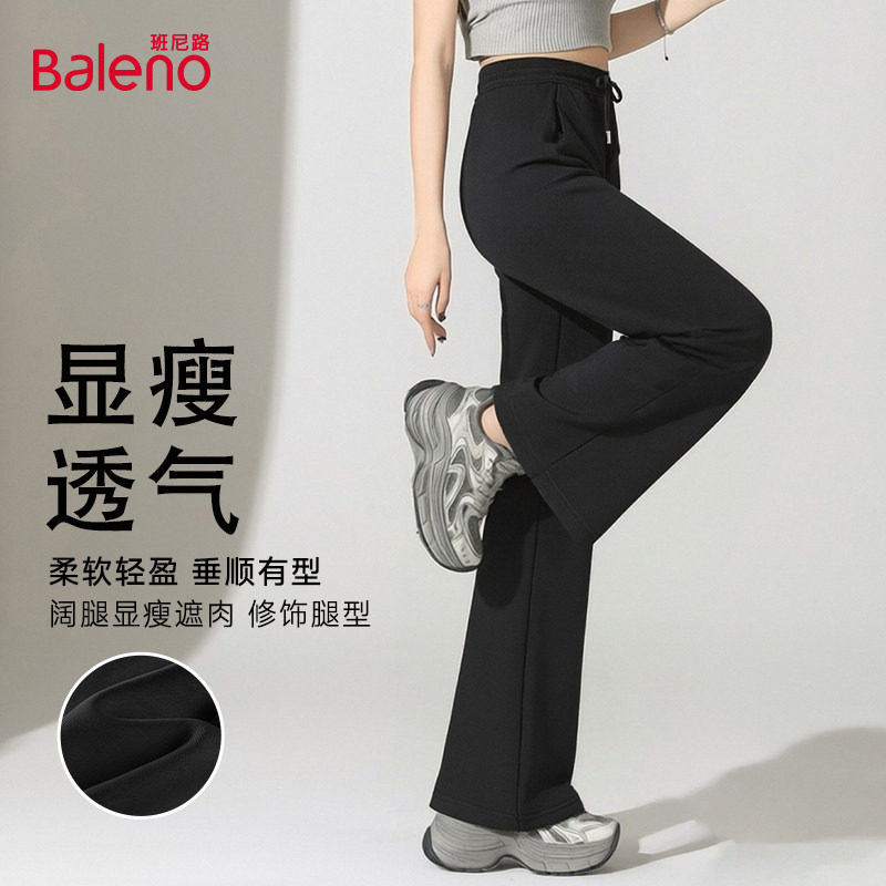 班尼路黑色微喇休闲裤女款2026春季新款高腰显瘦亲肤透气喇叭裤N