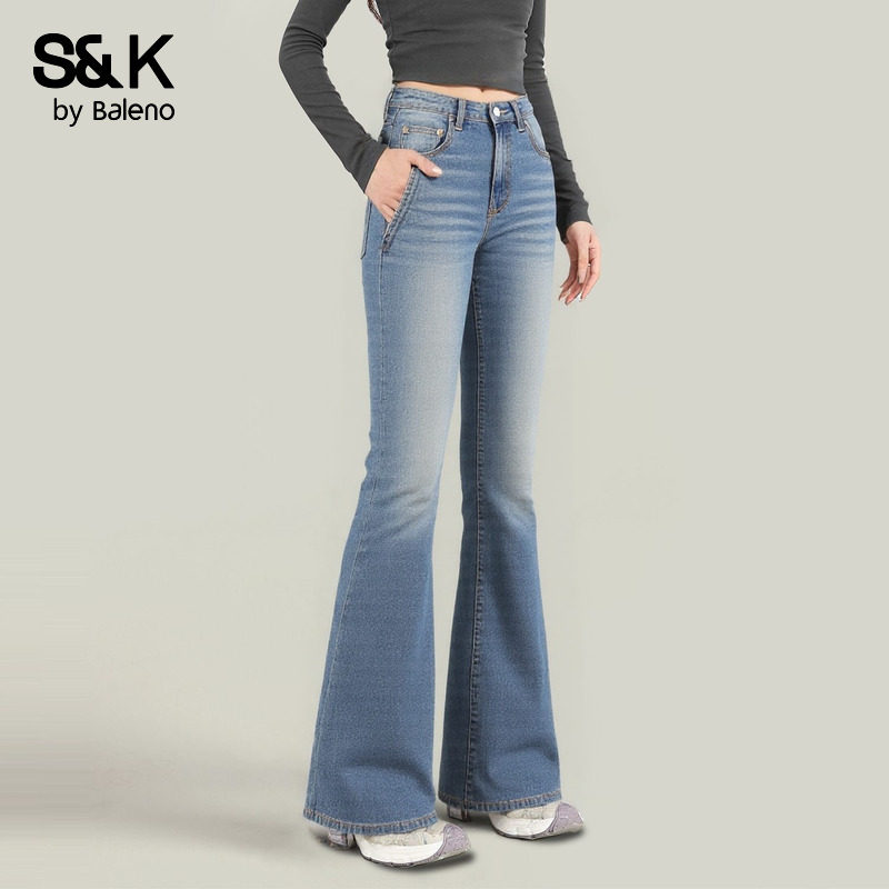 班尼路S&K系列复古蓝显瘦微喇牛仔裤女款2026春秋新款辣妹喇叭裤H