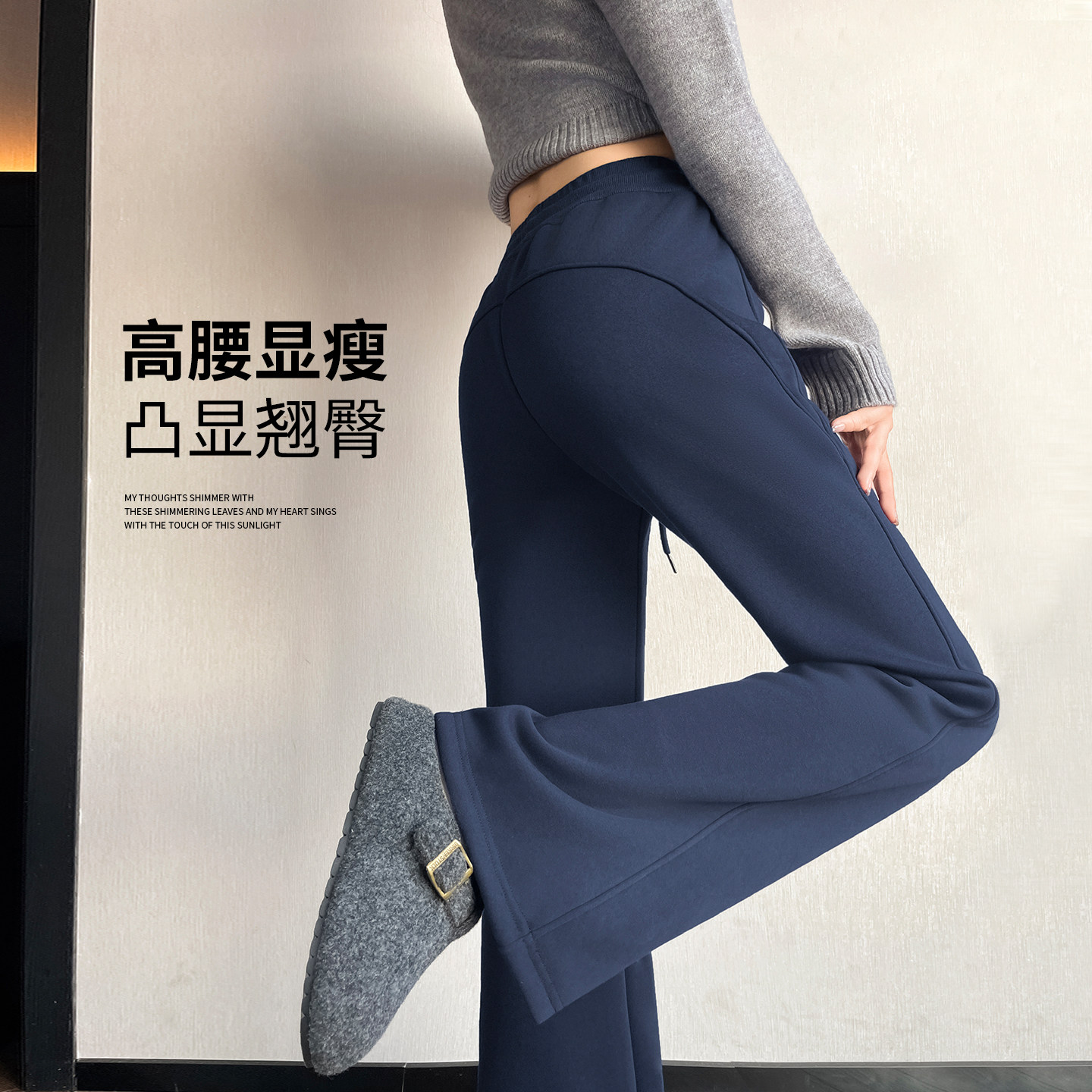 含羊毛!ins风轻松随意运动修身喇叭裤塑性超棒显身材休闲裤女款