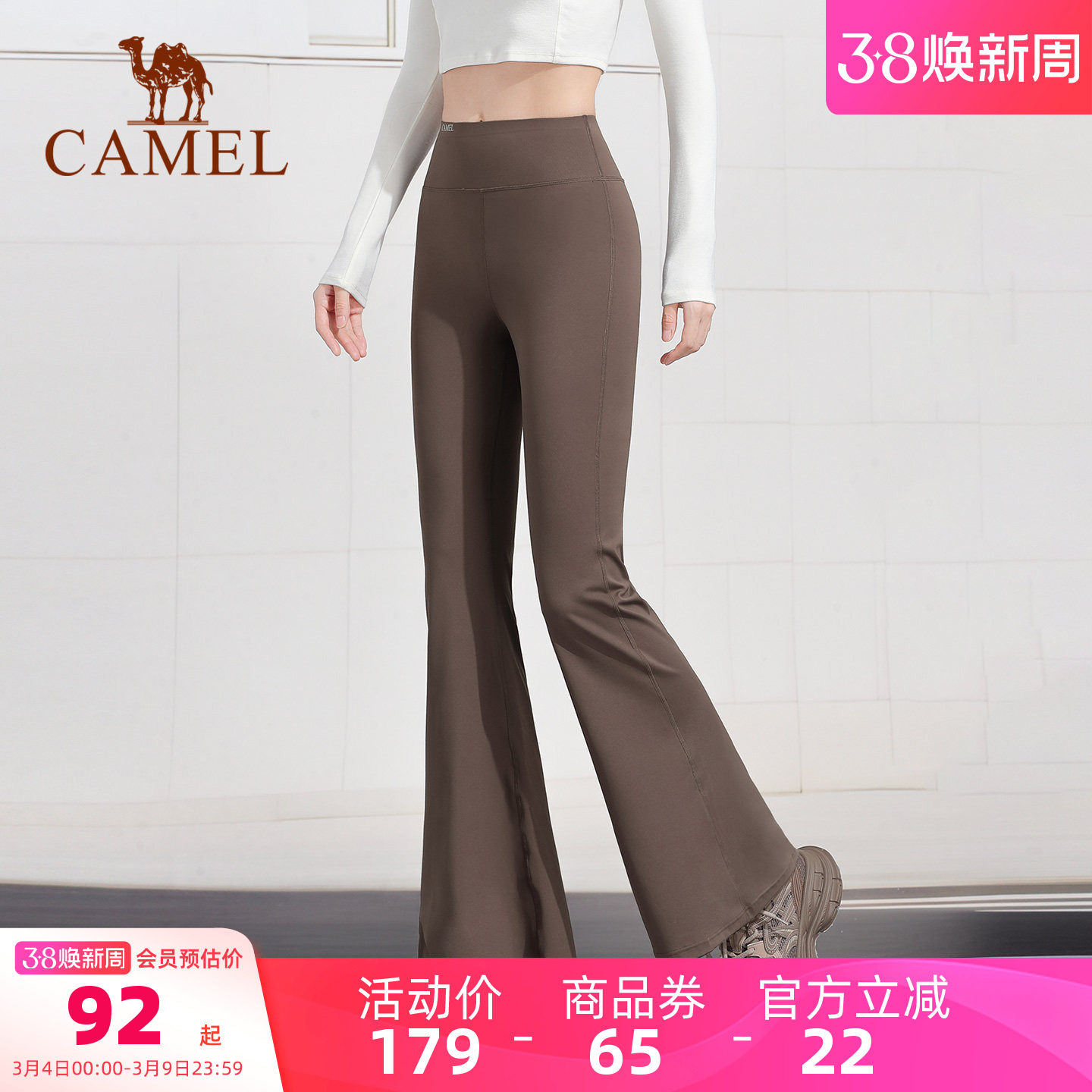 骆驼微喇叭裤女款春季透气训练健身裤时尚跑步修身弹力运动九分裤