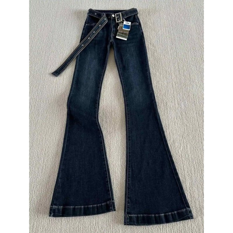 深蓝色微喇叭牛仔裤复古2025年秋季新款低腰修身显瘦拖地裤子女款