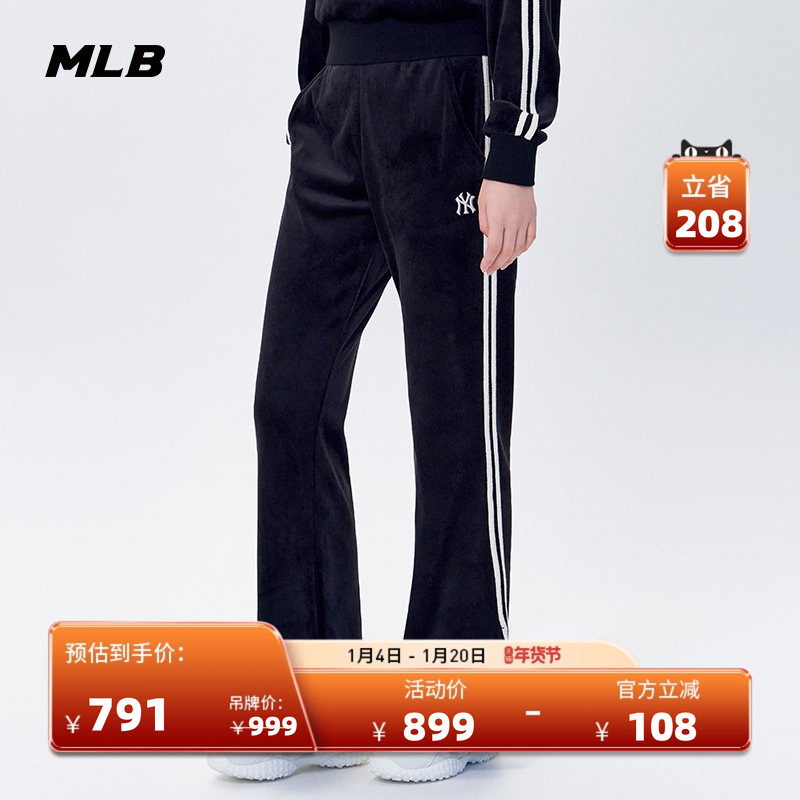 MLB官方 女款时尚天鹅绒休闲条纹喇叭长裤25冬季新款PTB13/TRB13