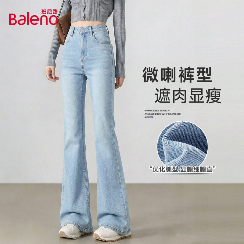 班尼路微喇牛仔裤女款2026春夏新款高腰遮胯显瘦宽松休闲喇叭裤Q