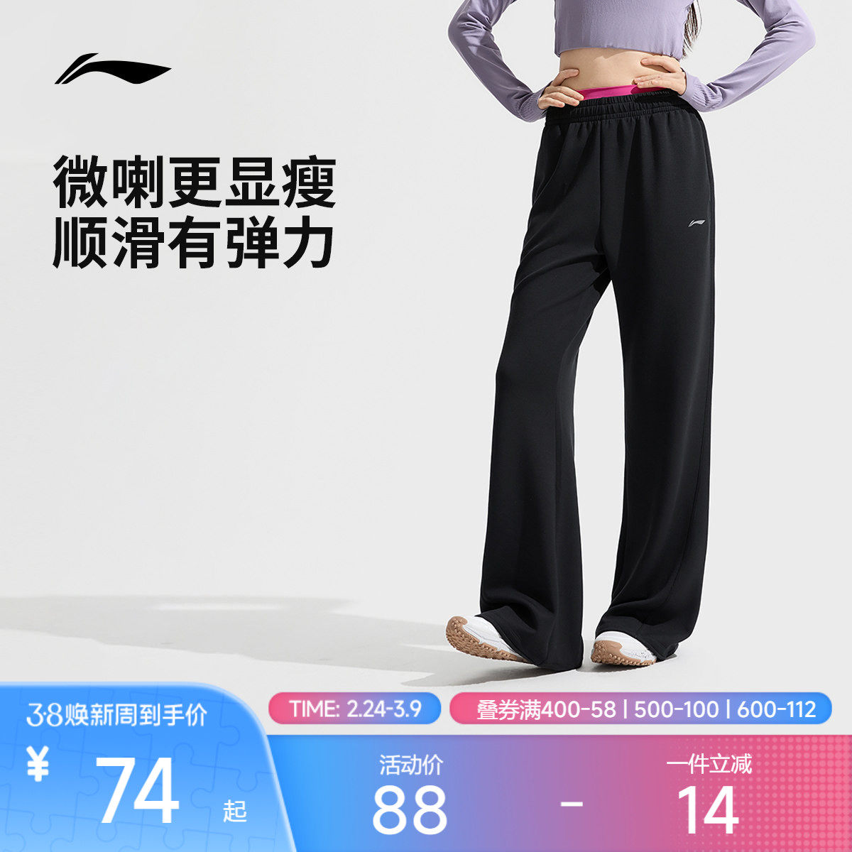 李宁运动裤女款夏季户外修身显瘦微喇版型瑜伽健身休闲阔腿喇叭裤
