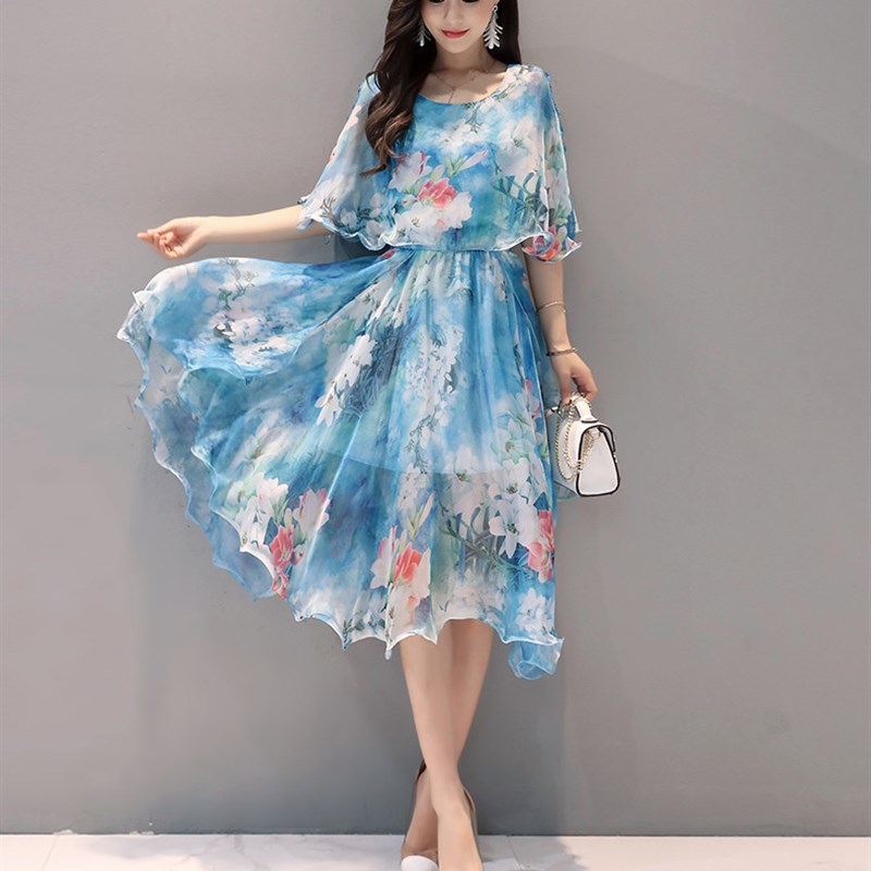波西米亚长裙沙滩裙海边度假2021夏季新款花裙子海滩雪纺连衣裙女