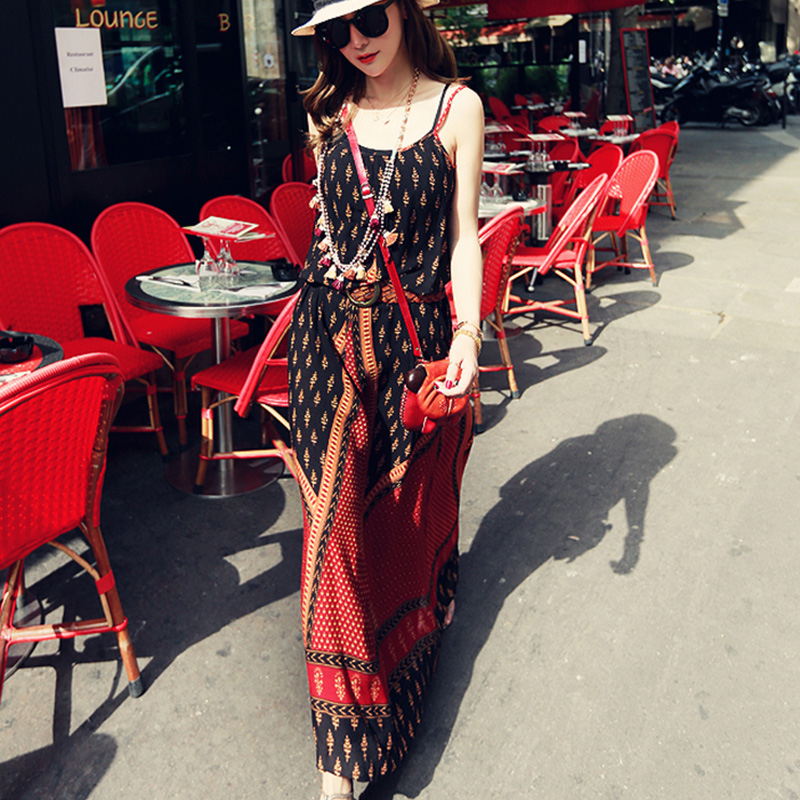 新款泰国度假波西米亚长裙吊带裙子夏女沙滩裙海滩泰国风情连衣裙