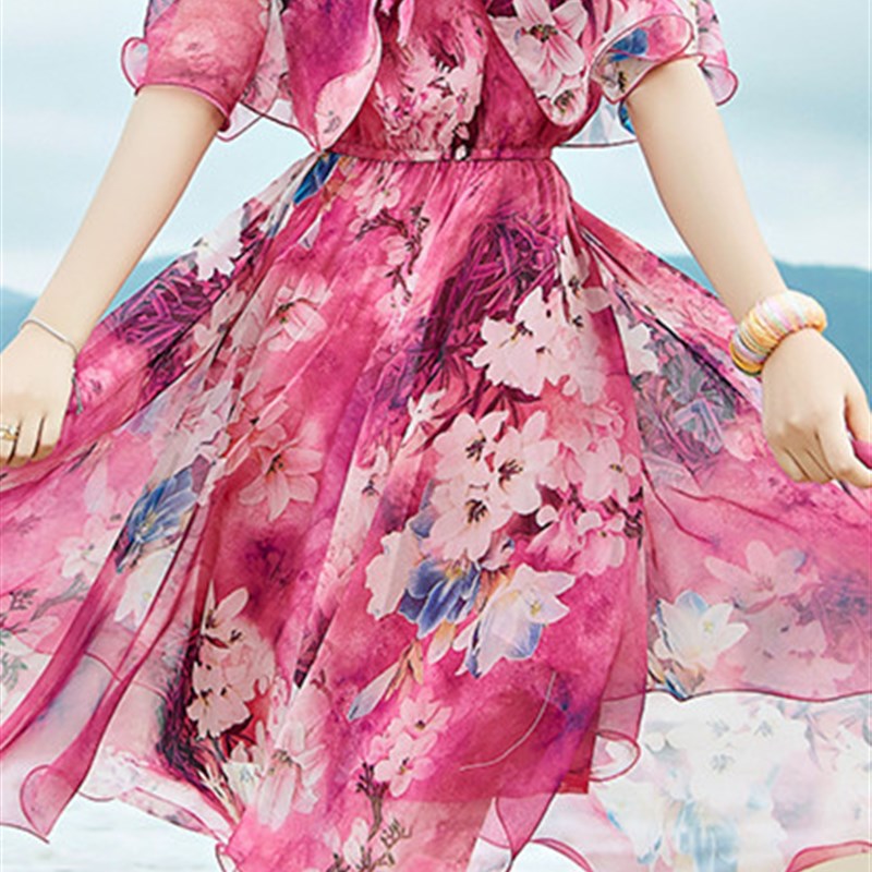 波西米亚长裙巴厘岛泰国海边度假沙滩裙女显瘦海滩大码雪纺连衣裙