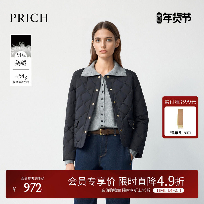 【90%鹅绒】PRICH时尚减龄菱格绗线羽绒服2025冬季新品轻暖外套女